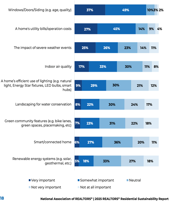 More than half—58%—of real estate pros say highlighting energy-efficient home features in a listing can add value, according to the newly released 2025 REALTORS® Residential Sustainability Report. Green features—such as upgraded windows, doors and insulation—could help lower the rising costs of maintaining a home. Still, buyers don’t always think to ask about them.