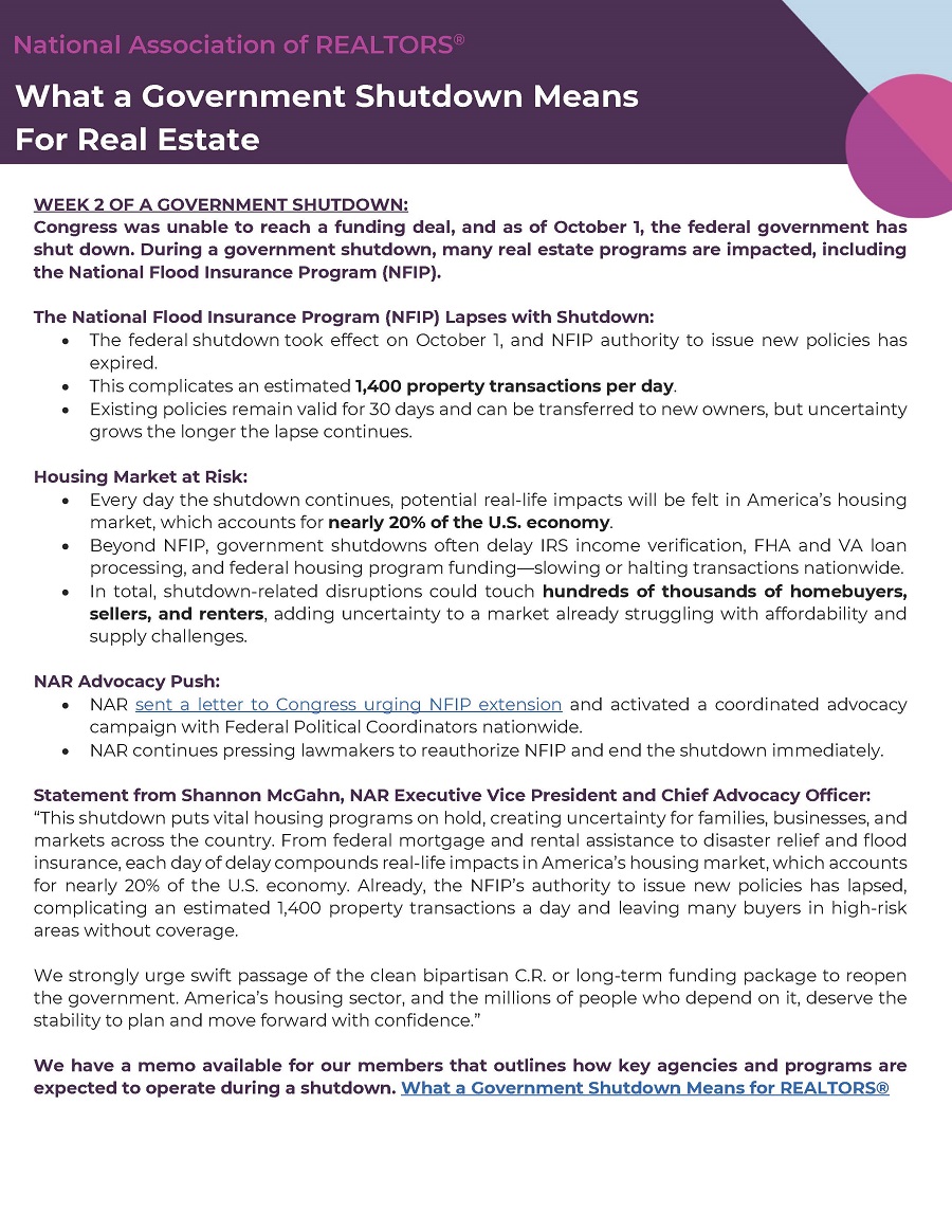 Also check out the latest episode of The Advocacy Scoop with Shannon McGahn and Patrick Newton: What a Shutdown Means for Real Estate