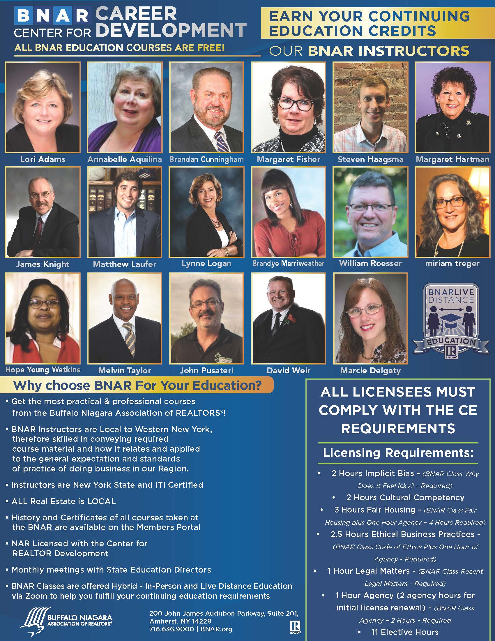 - Choose BNAR for Your Education - Our instructors are local to WNY therefore skilled in conveying required course material and how it relates to doing business in our region. Meet your BNAR Instructors